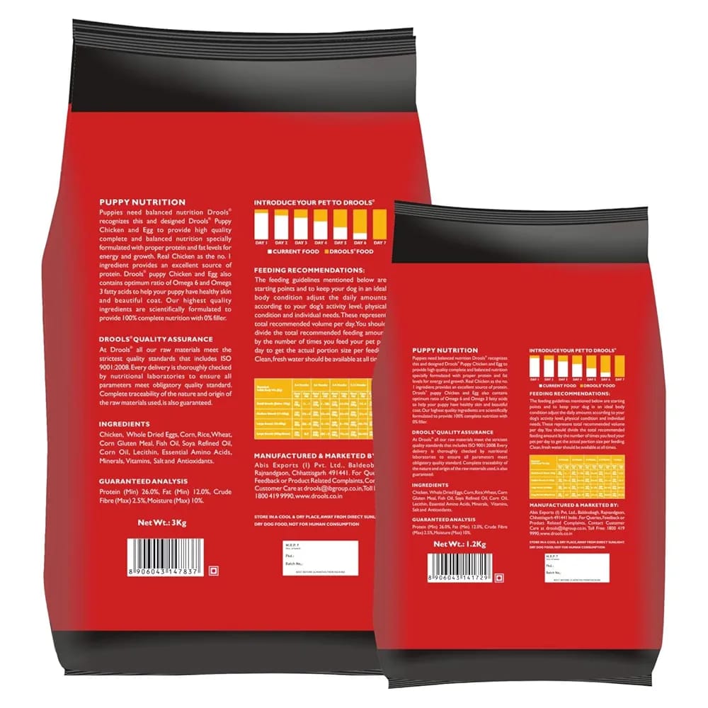 Drools Puppy Dry Dog Food Chicken and Egg, 3kg with Free 1.2kg, Total 4.2 kg Pack