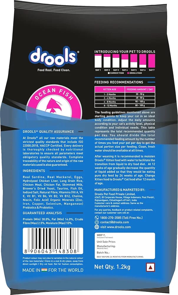 Drools Dry Kitten Food With Ocean Fish Is A Complete And Balanced Feed For Kitten.